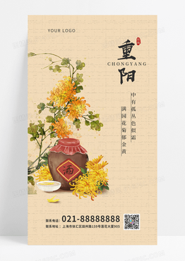 黄色九九重阳节简约插画农历九月九日传统节日手机海报