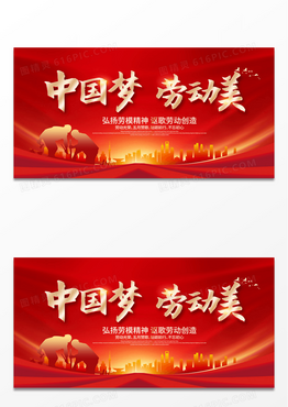 红色大气中国梦劳动美五一劳动节晚会舞台背景展板