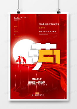 红色大气五一劳动节宣传海报劳动最光荣海报