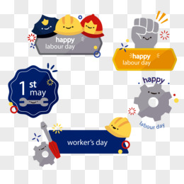 一组矢量卡通五一劳动节贴纸组图图标素材