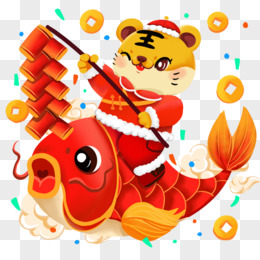 2022虎年插画风老虎骑锦鲤喜庆素材