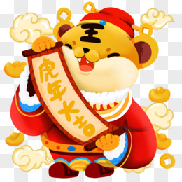 2022虎年插画风可爱老虎拿福字喜庆素材
