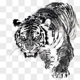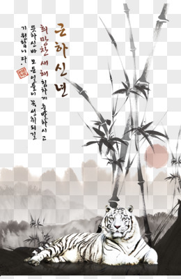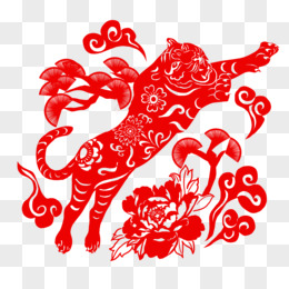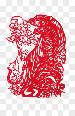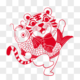 手绘剪纸新年怀抱锦鲤的老虎元素