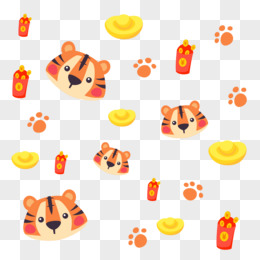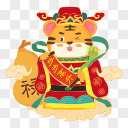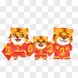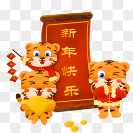 卡通手绘元旦快乐可爱小老虎免抠元素
