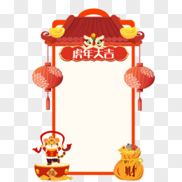 手绘简约涂鸦老虎边框装饰可爱读书卡png线条