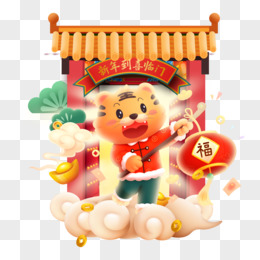 一组卡通水墨风十二生肖合集系列二之老虎免抠素材