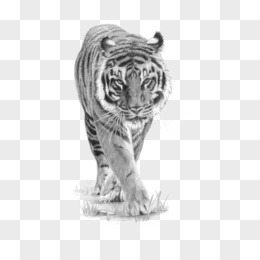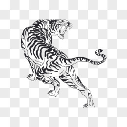 手绘黑白线描老虎免抠元素