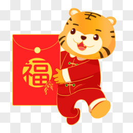 卡通手绘金边国潮风虎年发红包插画元素