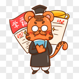 卡通手绘老虎学霸元素