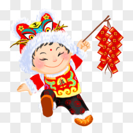 手绘虎年带虎头套的男娃元素