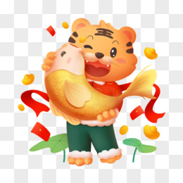 卡通手绘虎年吉祥物抱锦鲤形象元素