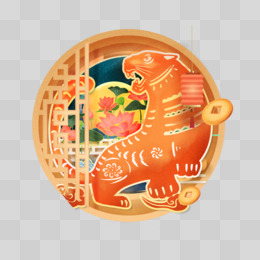 虎年圆形新年合成插画素材
