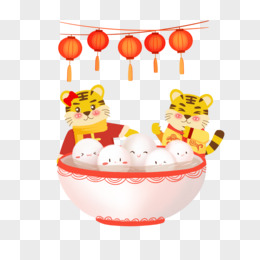 手绘卡通冬至过年老虎吃饺子