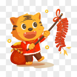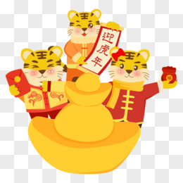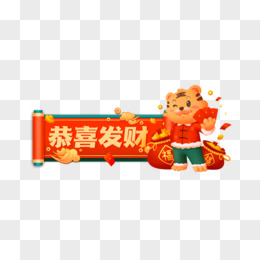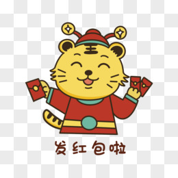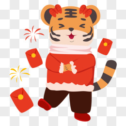 手绘插画风新年虎年恭喜发财祝福手举牌设计