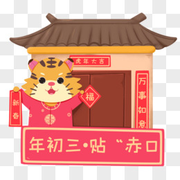 卡通手绘虎年初三贴赤口习俗免抠元素