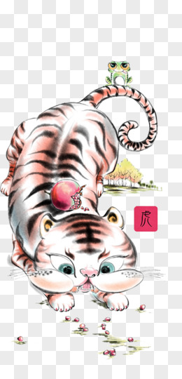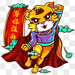 手绘国潮风创意身体强壮虎免抠元素