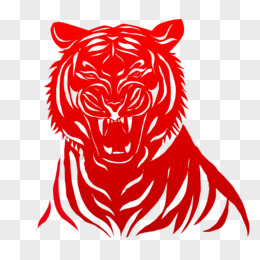 手绘红色创意虎剪纸素材