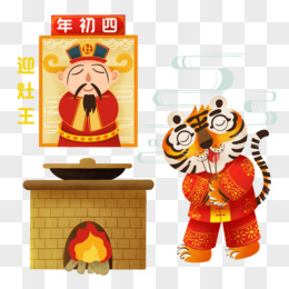 手绘插画虎年正月初四祭灶神免抠元素