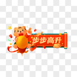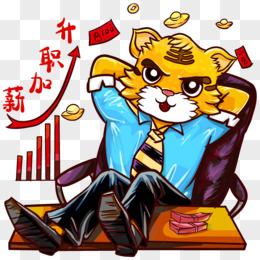 手绘国潮风创意升职加薪虎免抠元素