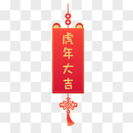 手绘红色虎元素中国结签文元素