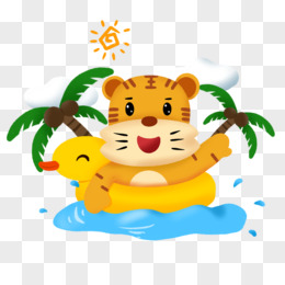 卡通手绘小虎夏天玩水游泳免抠元素