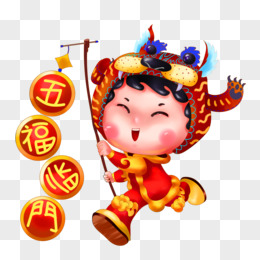 手绘插画风娃娃拿福字元素