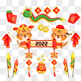 一组手绘卡通虎年系列免抠素材