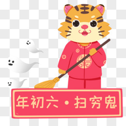 卡通手绘虎年初六扫穷鬼习俗免抠元素