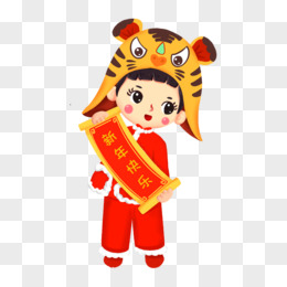 手绘虎年新年可爱虎头帽小女孩免抠元素
