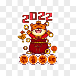 手绘卡通国潮恭喜发财虎年贴纸设计