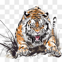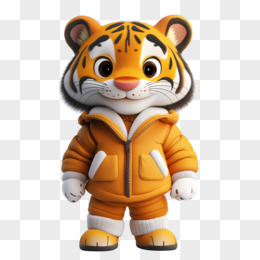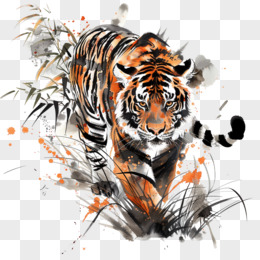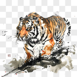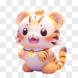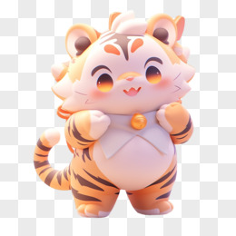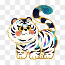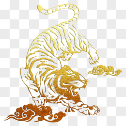 卡通可爱国潮老虎国潮金丝金边神兽动物国潮系列免抠元素