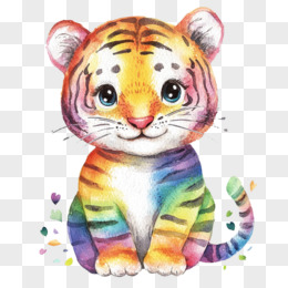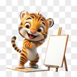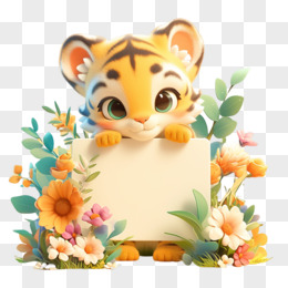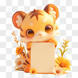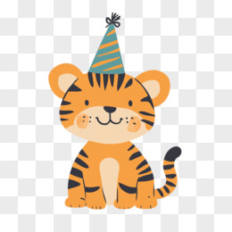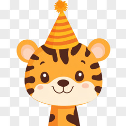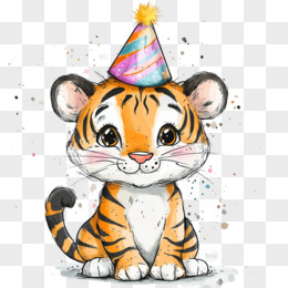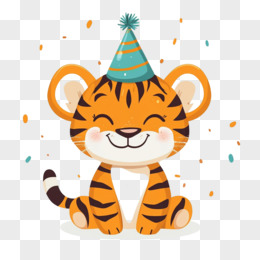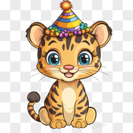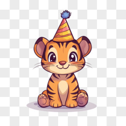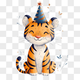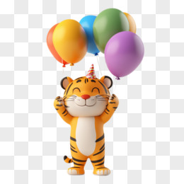 3D插画老虎戴着生日帽拿着彩色气球免抠元素