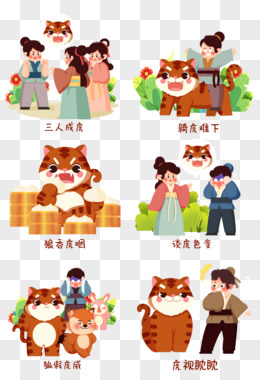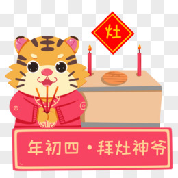 卡通手绘虎年初四拜灶神爷习俗免抠元素