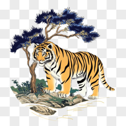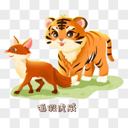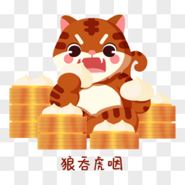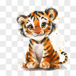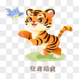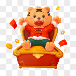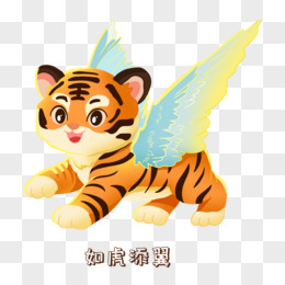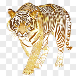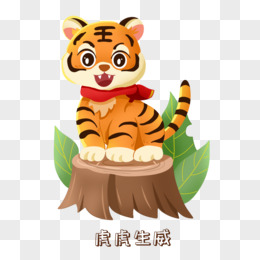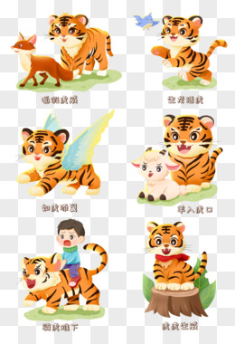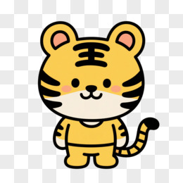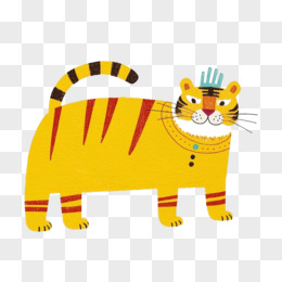 一个穿着黄色贸易的彩色老虎,可爱描边风格的免抠元素