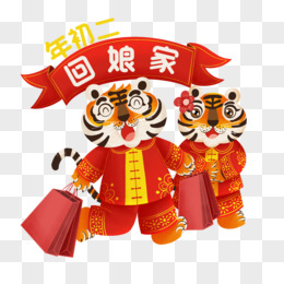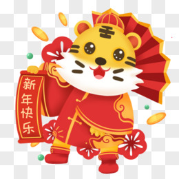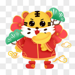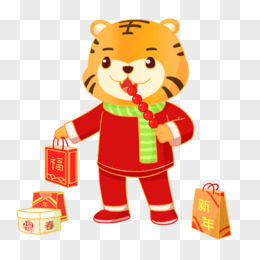 卡通手绘小虎装扮成圣诞老人免抠元素