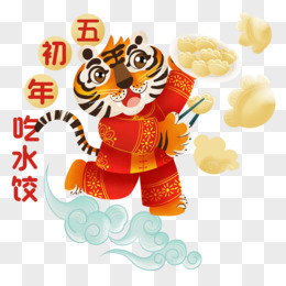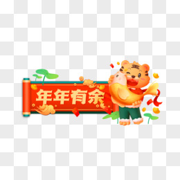 手绘卡通国潮年年有鱼虎年贴纸设计