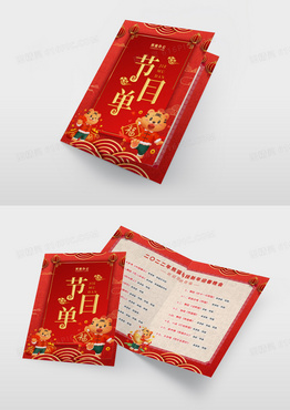 红金卡通老虎创意年会节目单