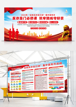 红色党政全民反诈宣传月反诈是门必修课筑牢防线守好责展板
