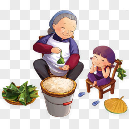 端午节慈祥老奶奶包粽子手绘卡通素材