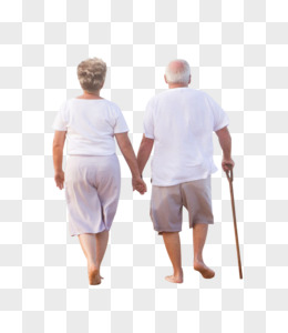 老爷爷老奶奶牵手背影