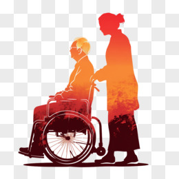 橙色剪影一个老奶奶推着坐轮椅的老爷爷老年人免抠元素