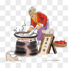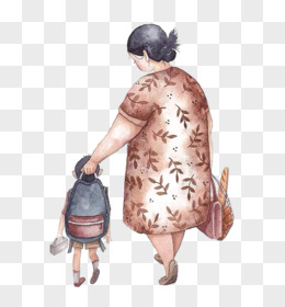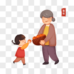手绘卡通孙女帮奶奶收柿子免抠素材