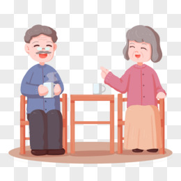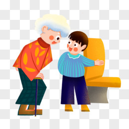 手绘插画风孙女女儿陪伴长辈一起庆祝免抠元素