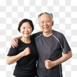 摄影真人人像穿短袖运动服的一对老年夫妇拥抱免抠元素