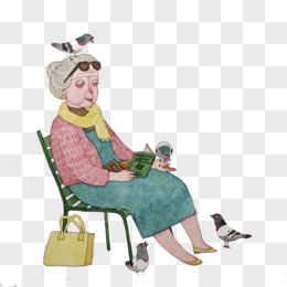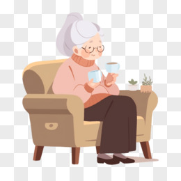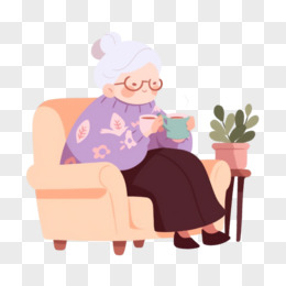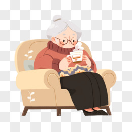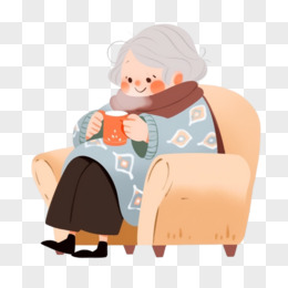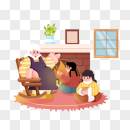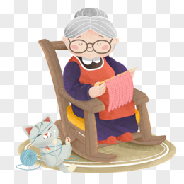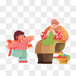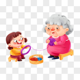 手绘老奶奶和小女孩一起卷毛线场景元素