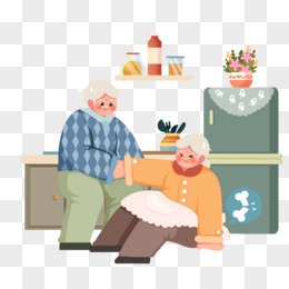 创意插画老奶奶厨房摔倒老爷爷慌张元素