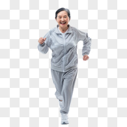 摄影真人人像一个穿着灰色运动服的老奶奶在跑步免抠元素