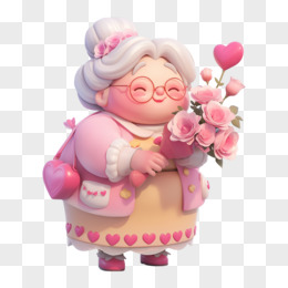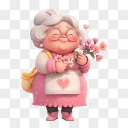 卡通风重阳节一个老奶奶和一个小女孩免抠元素