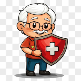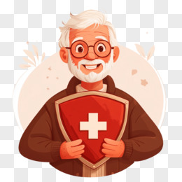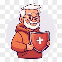 老爷爷老奶奶抱着盾牌医疗的免抠元素