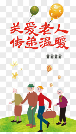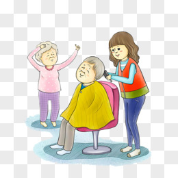 手绘卡通一家人陪老人拍合家福留念免抠元素